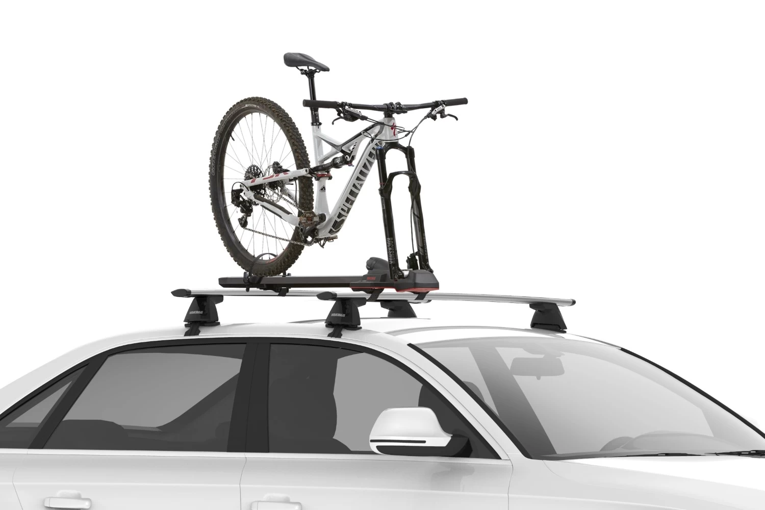 The Yakima HighSpeed is a premium roof bike carrier for 1 bicycle. The bicycle is secured at the front axle, so the front wheel needs to be removed. The maximum bicycle weight excluding front wheel is 18 kg. The HighSpeed is suitable for bikes with a quick-release front axle of 9 mm or with a thru axle of 12, 15 or 20 mm. The special TorqueRightâ„¢ ensures that the front axle is always clamped with the correct tension and is never too loose or too tight. The rear wheel is secured with a tension strap over the rim. Maximum tire width is 5 inches, which makes the HighSpeed bike carrier also suitable for a fat bike.