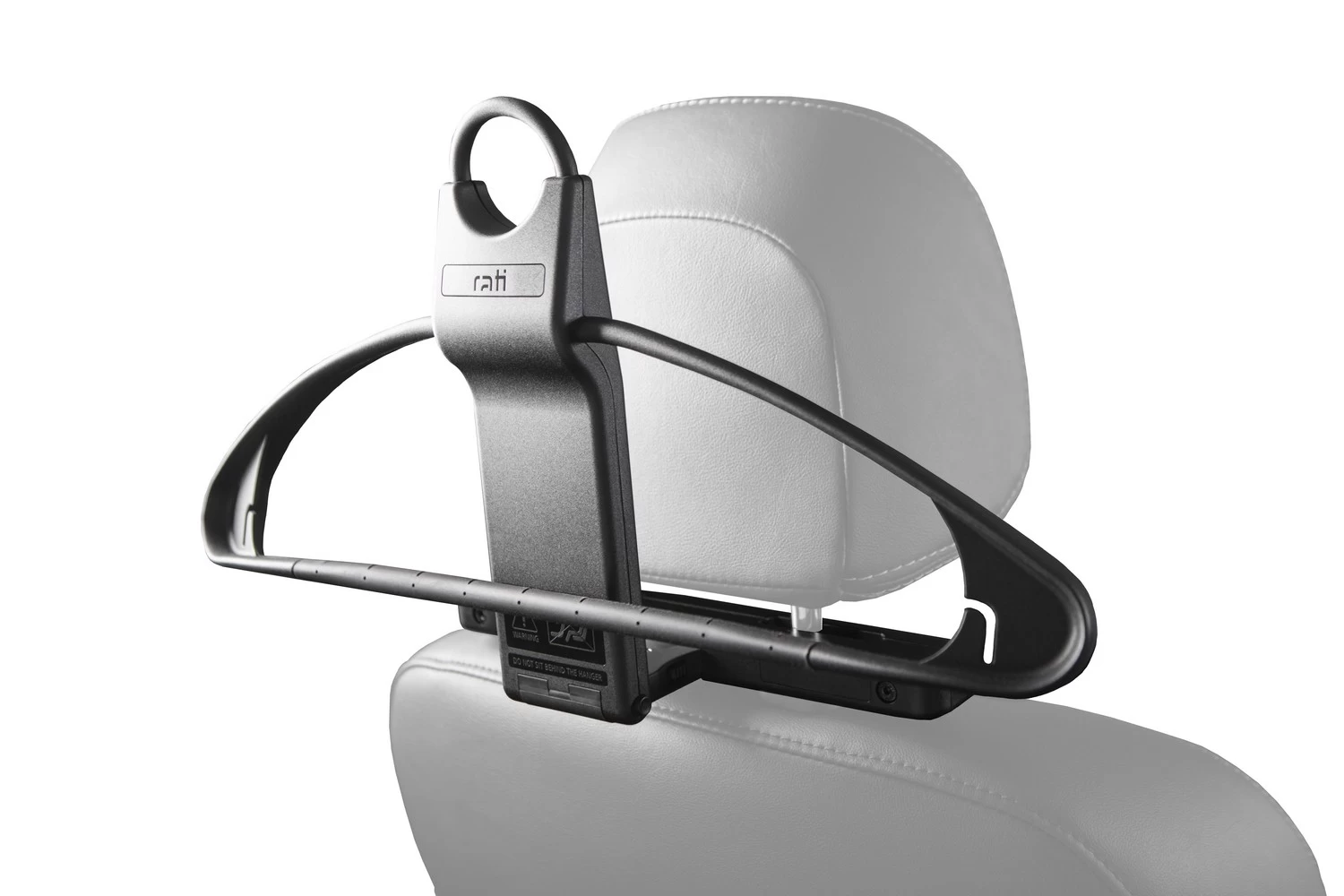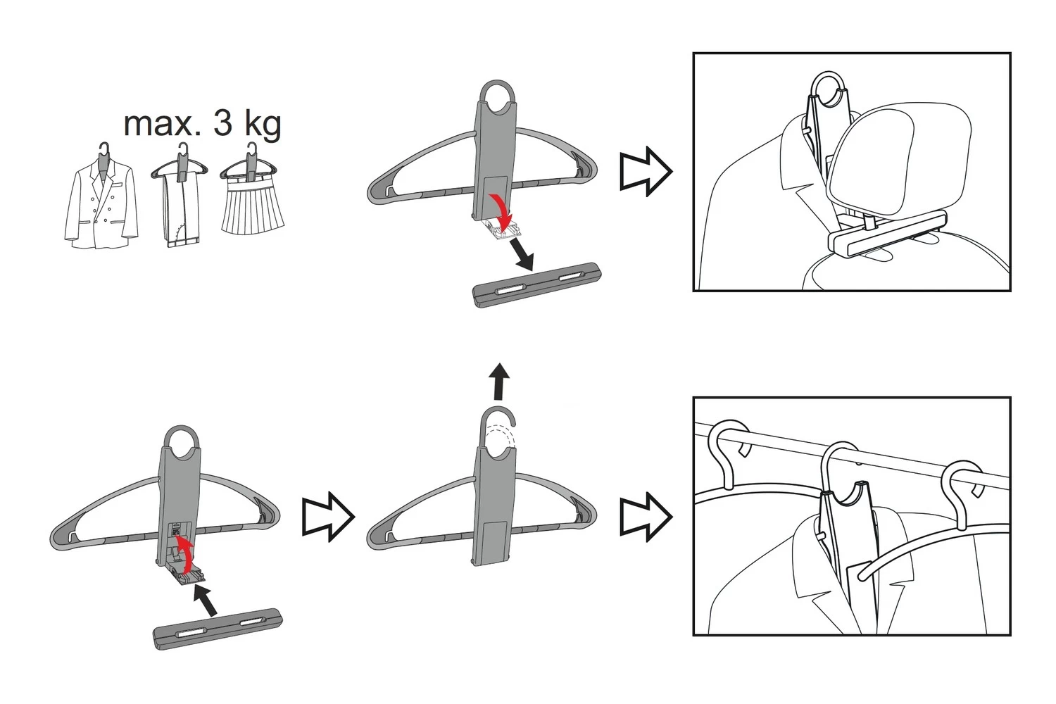 This luxurious Rati clothes hanger is ideal for hanging your clothes wrinkle-free while traveling by car. The included holder is mounted to the headrest bars with 3 screws. The clothes hanger can then be clicked into place. Thanks to the smart design, the Rati clothes hanger can also be used at home. You detach the clothes hanger including clothes from the holder and carry your clothes inside. The clothes hanger has a pull-out hook at the top, so you can easily hang it in a wardrobe or on a coat rack. The Rati clothes hanger is suitable for jackets, pants, skirts and suits and can also be used in combination with a garment bag.