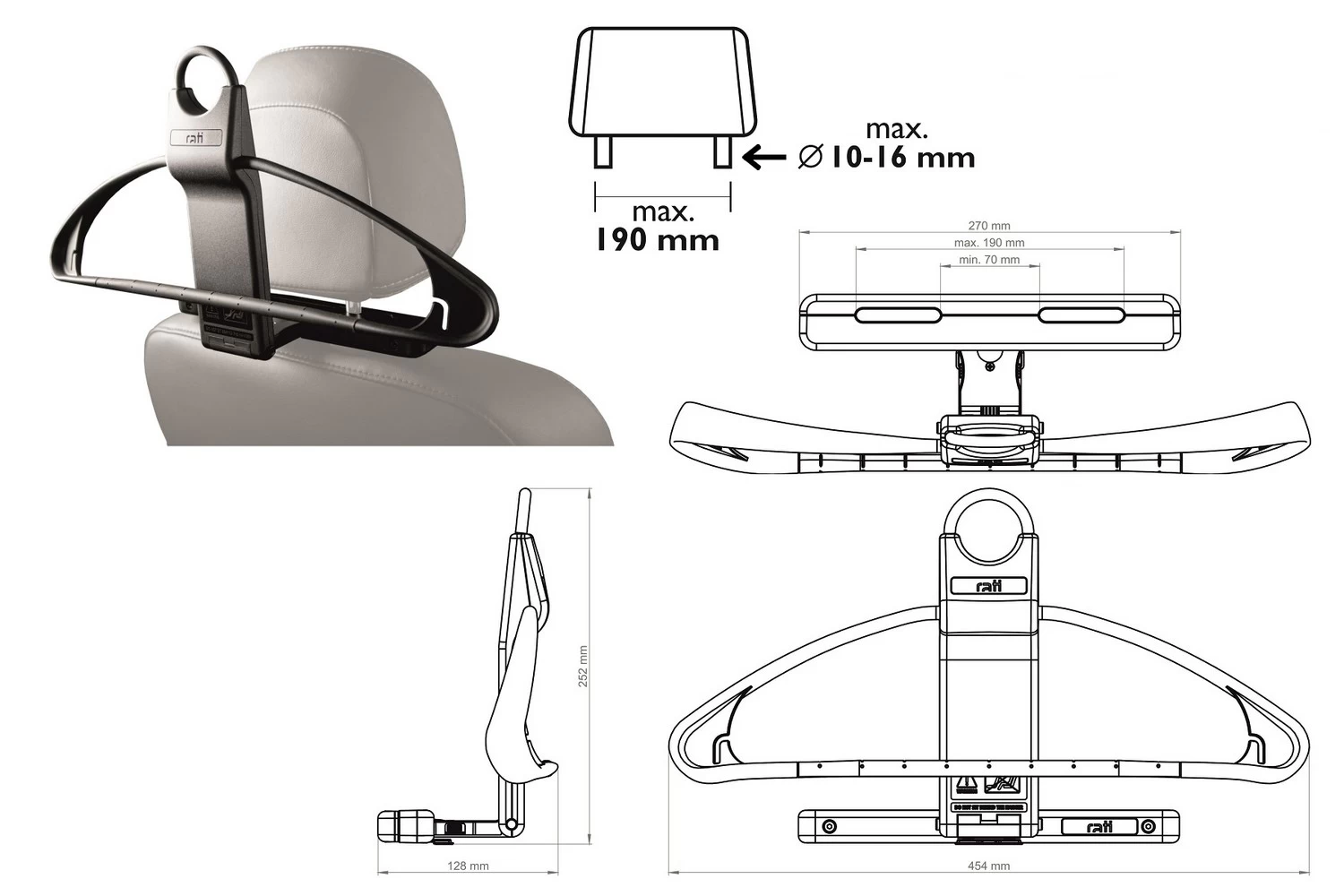 - Including holder for headrests with a bar diameter of 10-16 mm, the outer sides of the bars may be a maximum of 190 mm apart