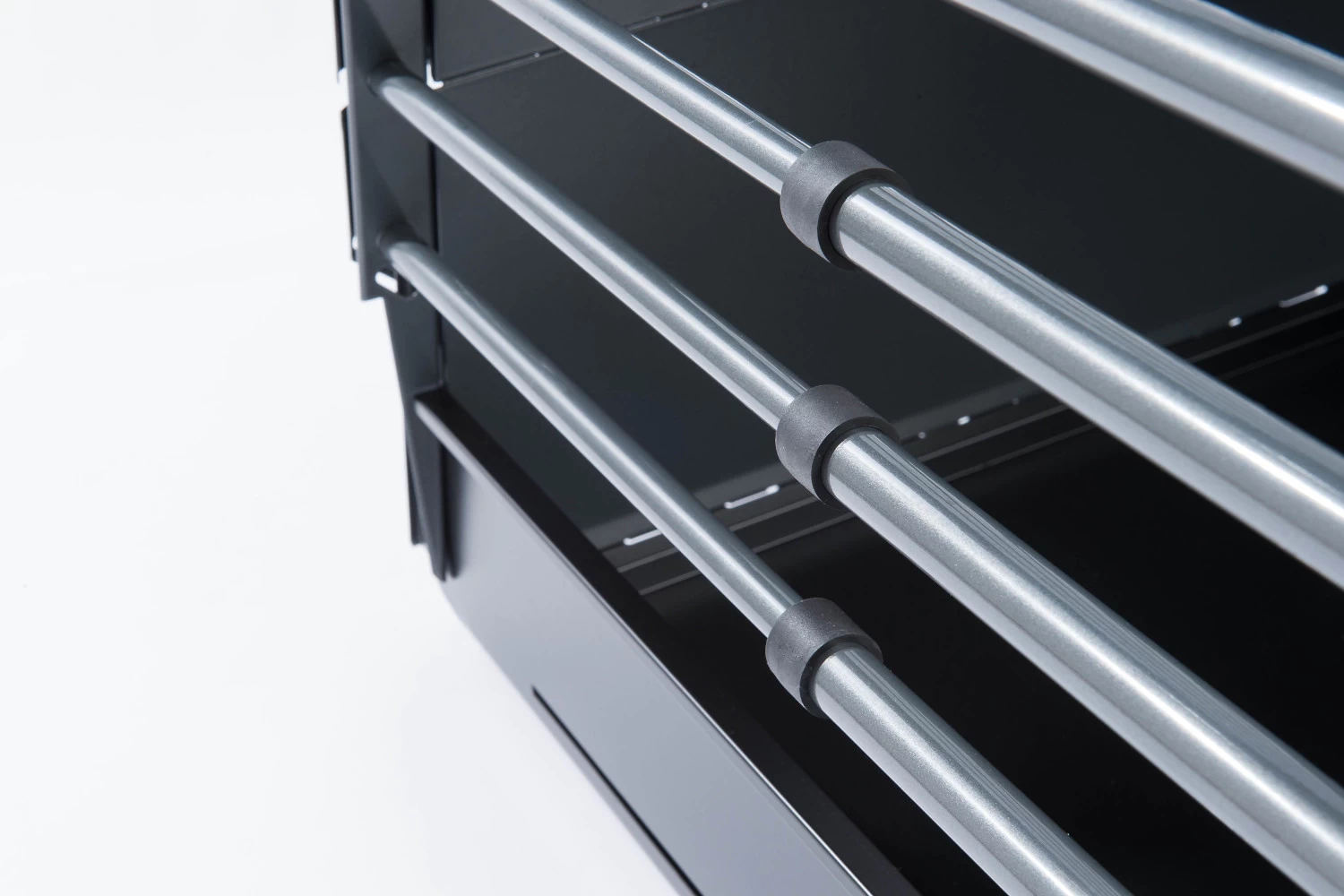 The VarioCage is available in different sizes and in two widths: single box or double box. Each VarioCage is adjustable in length and therefore fits in many car models. In order to make optimal use of the boot space, the front and back walls are slightly sloped.