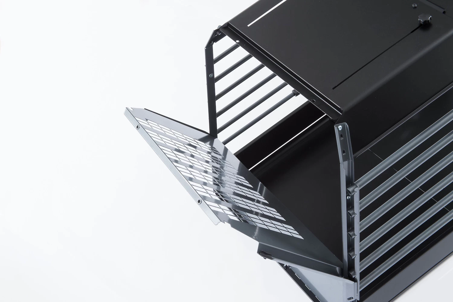 The VarioCage is available in different sizes and in two widths: single box or double box. Each VarioCage is adjustable in length and therefore fits in many car models. In order to make optimal use of the boot space, the front and back walls are slightly sloped.