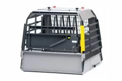 The VarioCage Compact is adjustable in length and therefore fits in many car models. In order to make optimal use of the boot space, the front and back walls are slightly sloped.