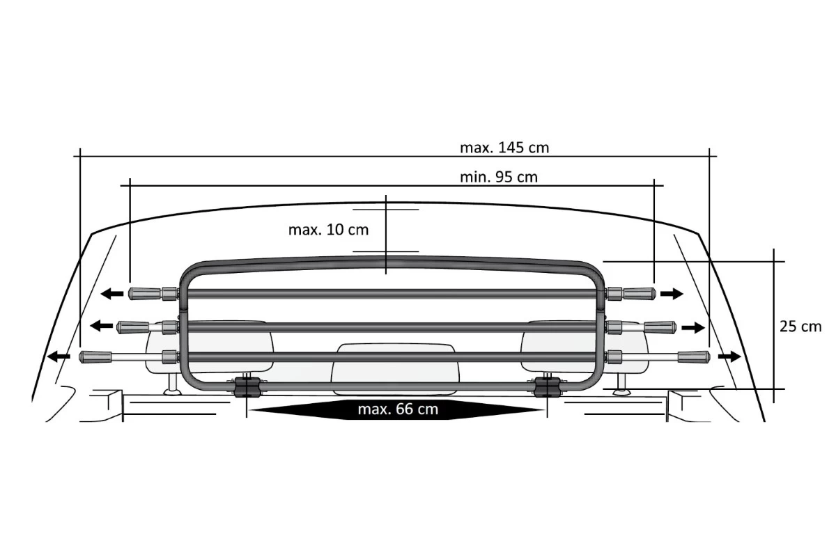 - Because the dog guard is mounted above the rear seats, in most cars the original boot roll cover remains closable in combination with the dog guard