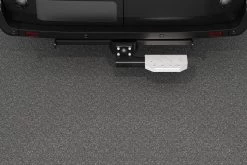 The Q-Step One-Step is a relatively compact and robust single-sided rear step to facilitate easy access to the cargo space of your Opel Movano C. The stainless steel step has a non-slip surface of 15 cm deep and can be mounted on both the left and right hand side. The step is mounted on a sturdy steel support, which is provided with an extremely corrosion-resistant KTL coating. The One-Step is designed for vehicles where the towbar is mounted on a flange. After installation, the towbar remains usable. Suitable for vehicles with parking sensors (PDC).