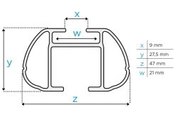 - Thickness of the cross bars: 47 x 27,5 mm