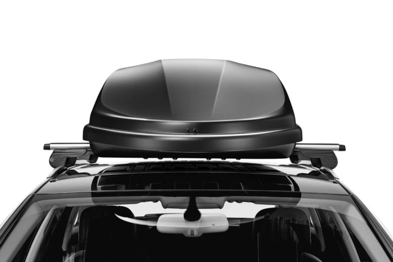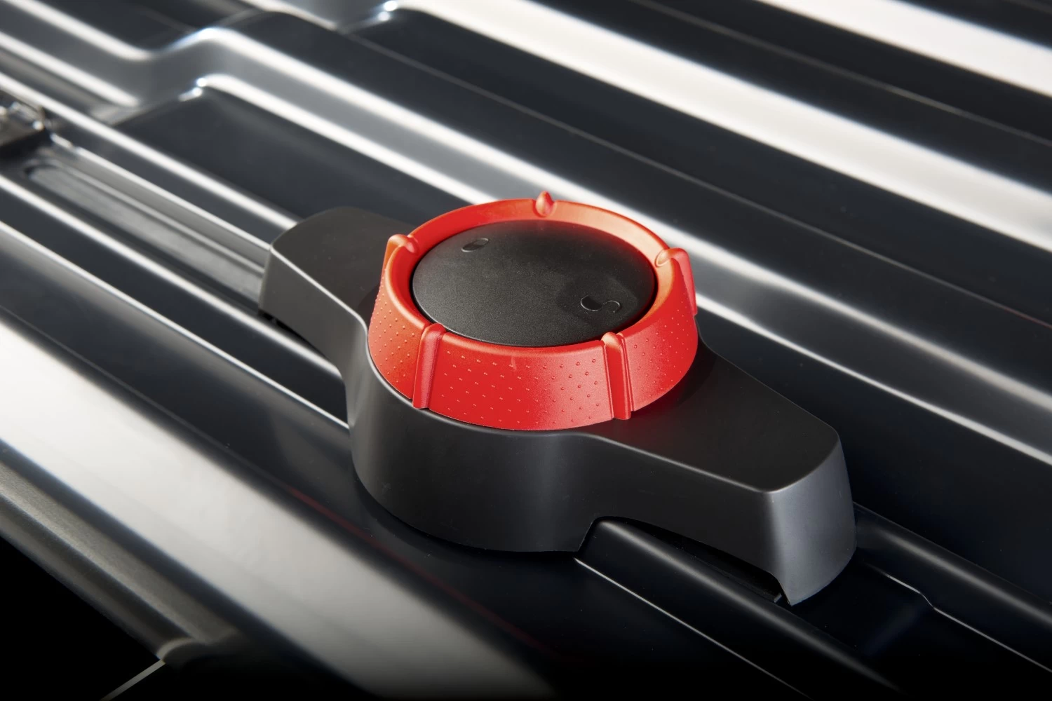 The Cruiser roof box is attached to the roof rack with the patented Premium Fit system. Mounting and removing the roof box is done quickly and easily with a rotating knob, which deploys special clamps around the crossbars. Each Premium Fit clamp centers itself on the crossbars and can therefore adapt itself to any crossbar with a maximum width of 95 mm.