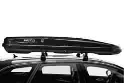 The Hapro Nordic the luxury model with very low height. Ideal when the car has to be parked in a garage with a low ceiling. Or you just buy it because of its great aerodynamic looks. Despite its sleek appearance it is yet spacious, thanks to its generous width. The Hapro Nordic is TÜV and ISO 11154 certified, which means that the roof box meets the strictest quality and safety demands. The Nordic roof box comes with a 5 years warranty.