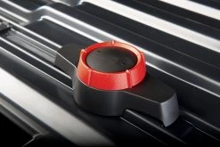 The innovative locking system allows you to close the box safely and securely, without the need for a key. You only use it if you really want to lock the roof box. When the roof box is closed, the handle automatically retracts, and you hear a click. This tells you with absolute certainty that the roof box is securely closed.
