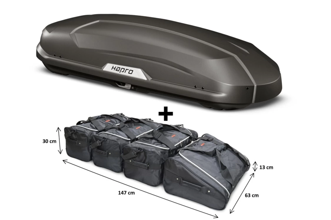 Roof Box Hapro Trivor 440 Supermatt Anthracite With Car-Bags.com Bag Set