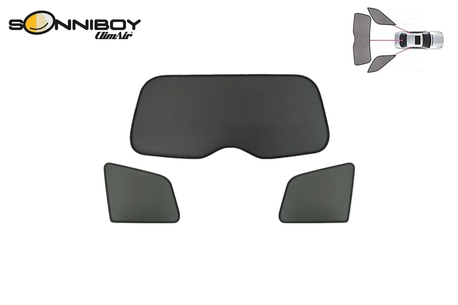 - The rear window is covered with one large sun shade, instead of two screens (except vans and MPVs with 2 rear doors)