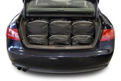 Packing has never been so easy and fast: if it fits in the Car-Bags.com⢠travel bag set, then it automatically fits into your boot space. Most sets consist out of an under layer of handy trolley bags with wheels and telescoping handle and a top layer of matching travel bags. A Car-Bags travel bag set is exactly tailored per car model. The set is not composed of a fixed range of standard bags, but the sizes of the trolley bags and travel bags are precisely adapted to the boot space. As a result, the boot space is optimally used in height, width and length. Car-Bags.com travel bags are mostly 30-35 cm wide, so that folded clothing fits well in it. Our bags are not too large, because large bags are heavy and unwieldy. Moreover the contents of large bags tend to get tangled more easily.