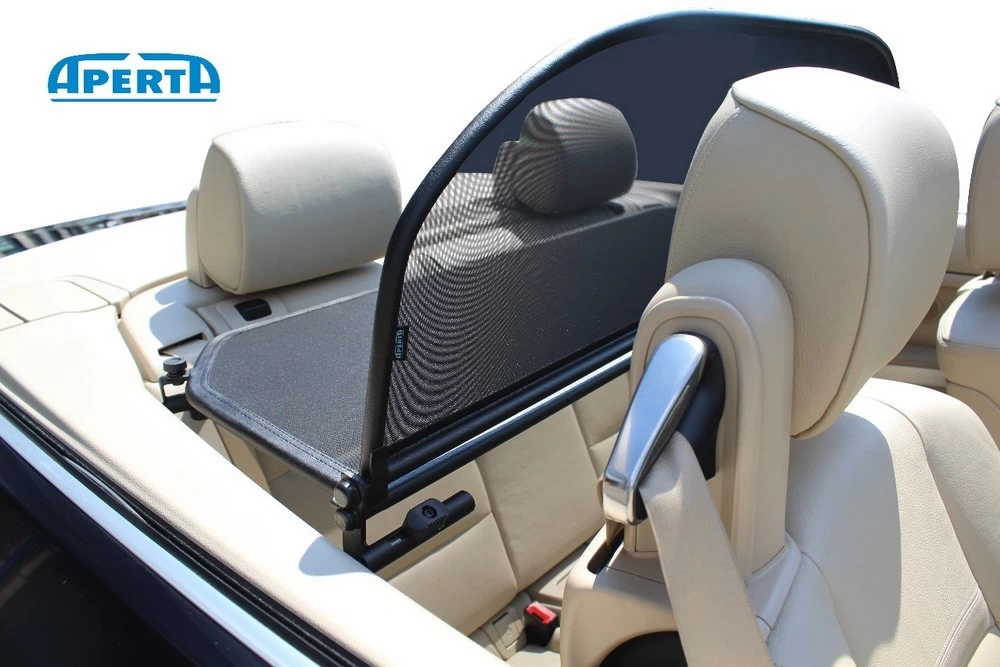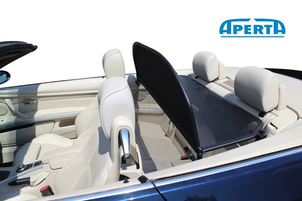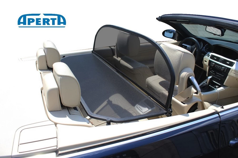 This cabriolet wind deflector from the brand Aperta is tailor-made for your BMW 3 Series Cabriolet (E93). Aperta stands for top quality, made in Europe. The screen is easy to install, making as much use as possible of original mounting points in the car. The used wind screen fabric has come out of the tests as the best and is the least susceptible to tearing. However, it is better to protect the wind stop against sharp materials in dismounted state, for example, by ordering the matching storage bag with your wind breaker (see below under Related products). The wind deflector in the steel frame ensures a reduction in turbulence of up to 80% while driving with an open roof. The wind deflector usually remains mounted in your cabriolet after its first use. The convertible roof can still be opened and closed when the windshield is installed.