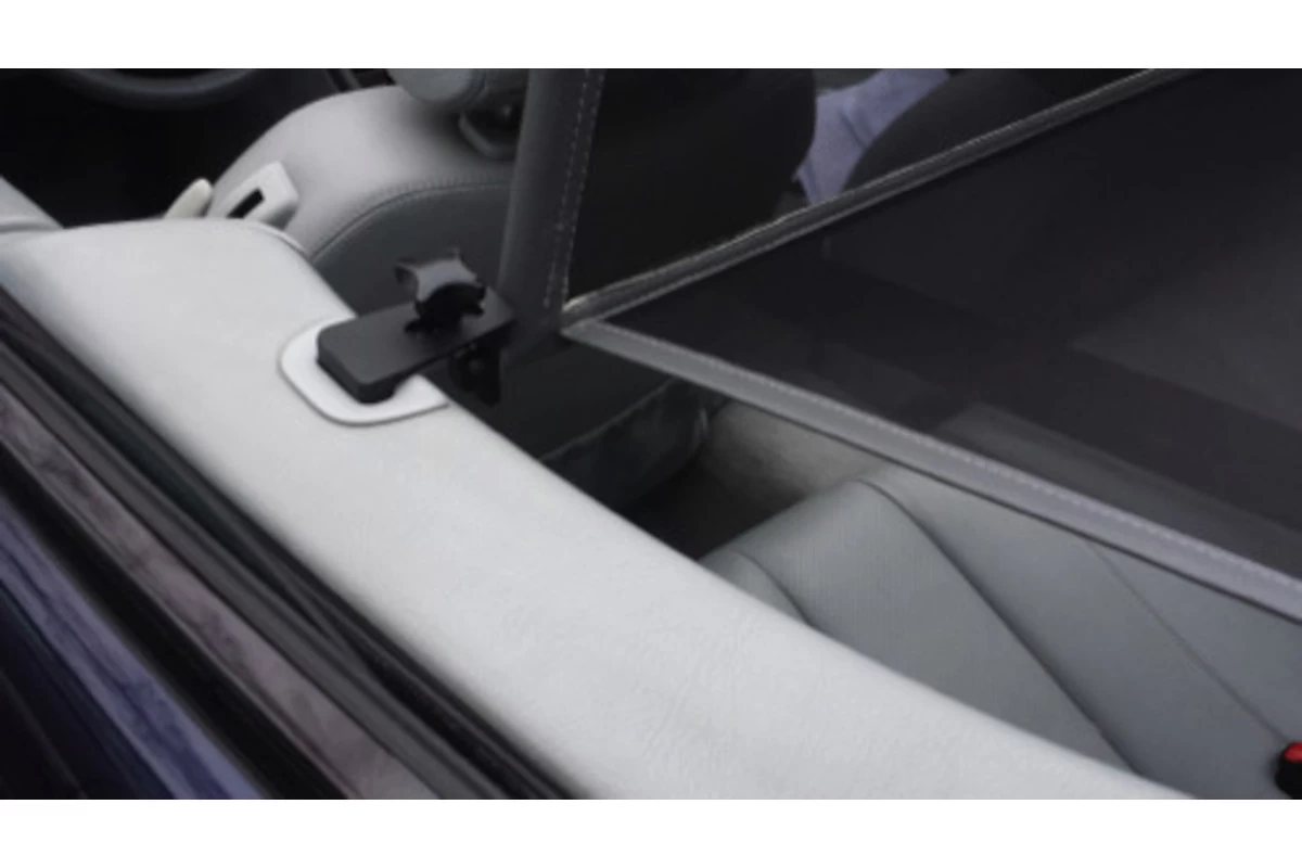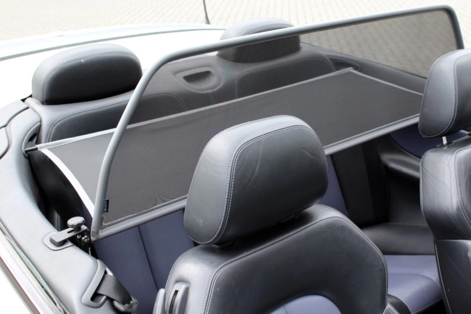This cabriolet wind deflector from the brand Aperta is tailor-made for your Mercedes-Benz C-Class CLK (A208). Aperta stands for top quality, made in Europe. The screen is easy to install, making as much use as possible of original mounting points in the car. The used wind screen fabric has come out of the tests as the best and is the least susceptible to tearing. However, it is better to protect the wind stop against sharp materials in dismounted state, for example, by ordering the matching storage bag with your wind breaker (see below under Related products). The wind deflector in the steel frame ensures a reduction in turbulence of up to 80% while driving with an open roof. The wind deflector usually remains mounted in your cabriolet after its first use. The convertible roof can still be opened and closed when the windshield is installed.