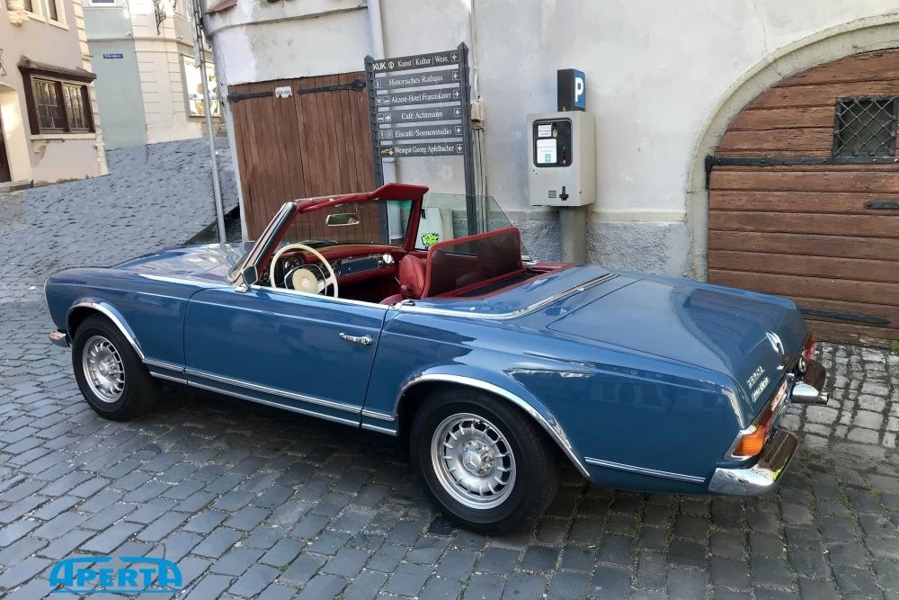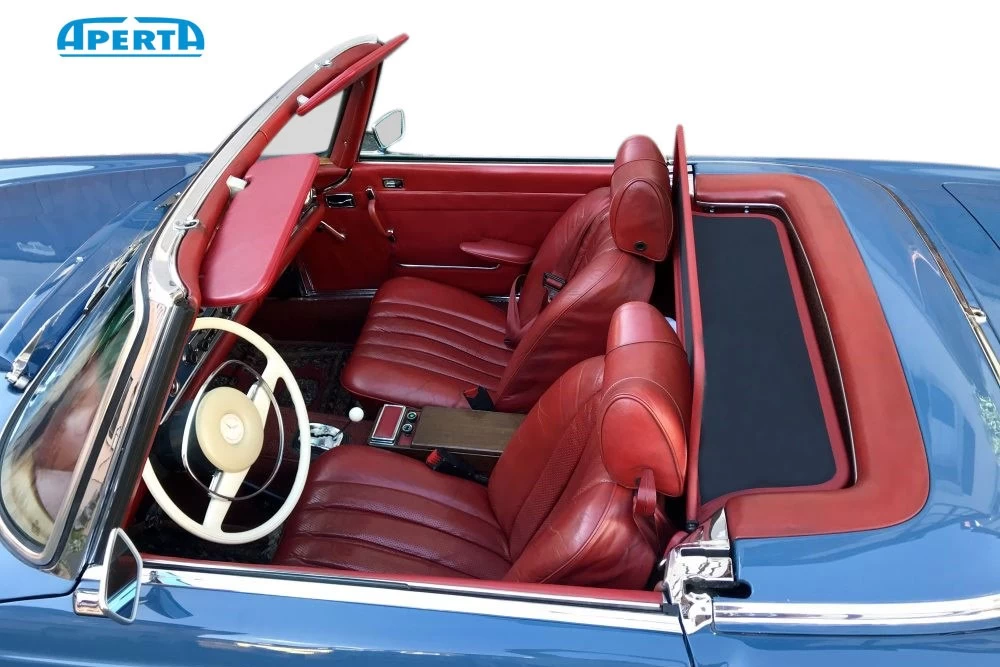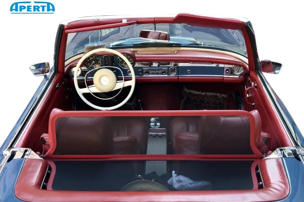 This cabriolet wind deflector from the brand Aperta is tailor-made for your Mercedes-Benz SL (W113). Aperta stands for top quality, made in Europe. The screen is easy to install, making as much use as possible of original mounting points in the car. The used wind screen fabric has come out of the tests as the best and is the least susceptible to tearing. However, it is better to protect the wind stop against sharp materials in dismounted state, for example, by ordering the matching storage bag with your wind breaker (see below under Related products). The wind deflector in the steel frame ensures a reduction in turbulence of up to 80% while driving with an open roof. The wind deflector usually remains mounted in your cabriolet after its first use. The convertible roof can still be opened and closed when the windshield is installed.