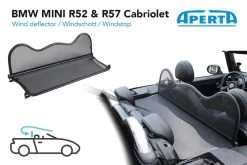 This cabriolet wind deflector from the brand Aperta is tailor-made for your Mini Cabriolet (R57 – Mk II). Aperta stands for top quality, made in Europe. The screen is easy to install, making as much use as possible of original mounting points in the car. The used wind screen fabric has come out of the tests as the best and is the least susceptible to tearing. However, it is better to protect the wind stop against sharp materials in dismounted state, for example, by ordering the matching storage bag with your wind breaker (see below under Related products). The wind deflector in the steel frame ensures a reduction in turbulence of up to 80% while driving with an open roof. The wind deflector usually remains mounted in your cabriolet after its first use. The convertible roof can still be opened and closed when the windshield is installed.